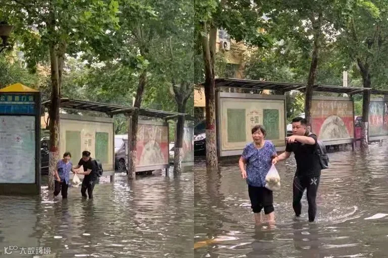 韩鹏老师在医院讲完微课堂,回酒店的途中,看到一名阿姨焦虑不安,想要过到对岸,但是无法前行。韩老师热心帮助阿姨,告诉阿姨哪里比较好走,水比较少。