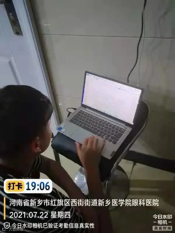 企业领导和当地平台负责人在7月20日快速组建临时工作小组,通过视频连线,关注一线情况,及时做出指导,积极应对困难。而小伙伴在确保安全的前提下,冒着风雨去到酒店附近的眼科医院借电开展线上教学工作,为市场开展微课堂学习和线上直播学习。
