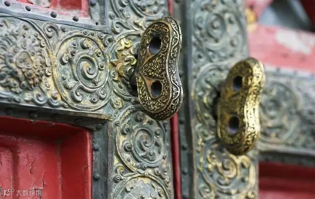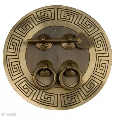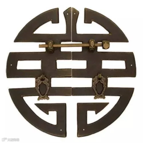 ▲ 拉手有时还配上古朴的门闩,“鱼”的寓意是年年有余;“万”是吉祥标志,“万”字的笔划向四个方向伸展,代表着太阳四射的光芒,给人们带来温暖。