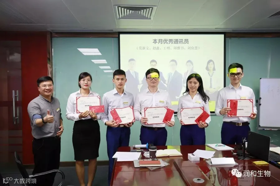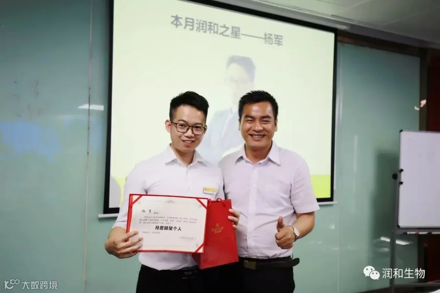 润和生物副总裁杨崇胜先生为本月润和之星杨军颁发证书和奖品