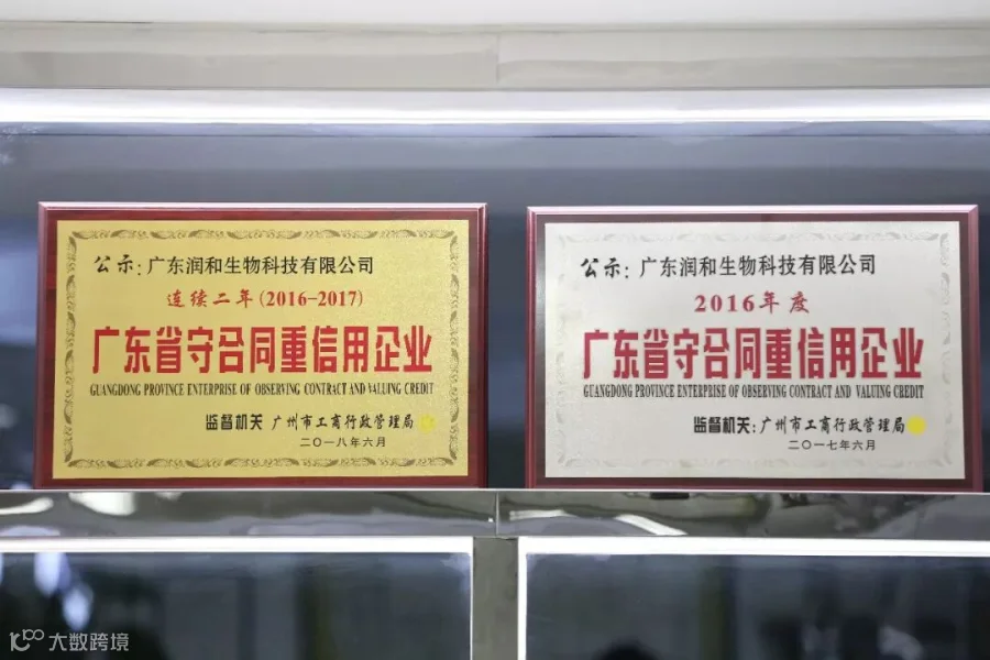 ▲润和生物连续两年获得“广东省守合同重信用企业”荣誉称号!