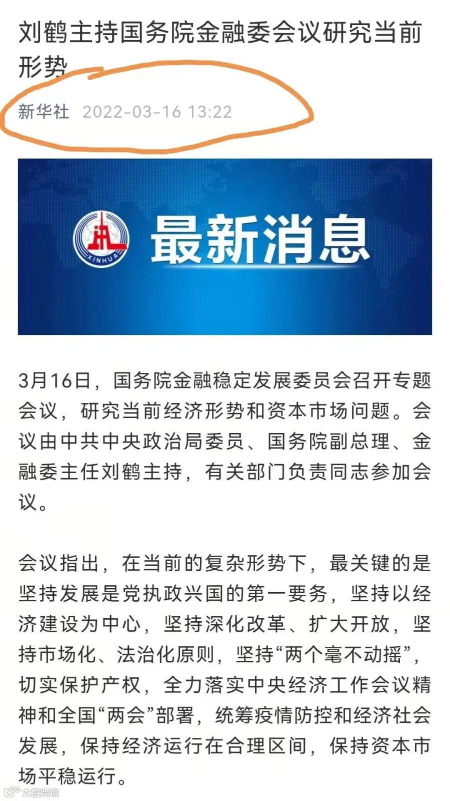 刘鹤主持召开国务院金融稳定发展委员会专题会议,研究当前经济形势和资本市场问题:宏观方面,切实振作一季度经济,货币政策要主动应对,新增贷款要保持适度增长;地产方面,研究和提出有力有效的防范化解风险应对方案;中概股,目前中美双方监管机构保持了良好沟通,已取得积极进展;平台经济,完善既定方案,通过可预期的监管,促进健康发展;香港市场,内地与香港两地监管机构要加强沟通协作。