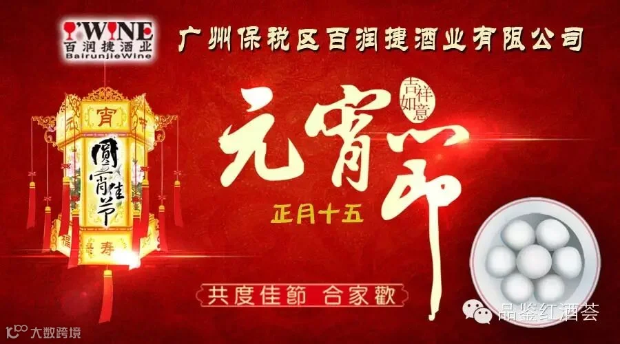 放挂鞭炮,鸿运当头;悬盏灯笼,喜气洋洋;舞阵龙狮,气势如虹;吃口汤圆,其乐融融;品杯美酒,神采飞扬;广州保税区百润捷酒业有限公司祝大家元宵节快乐!阖家团圆!