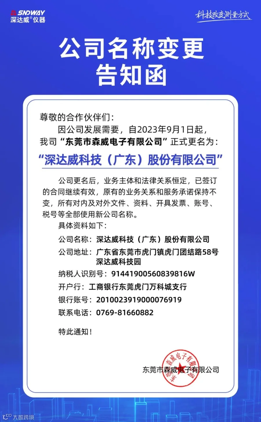导读:“东莞市森威电子有限公司”正式更名为“深达威科技(广东)股份有限公司”