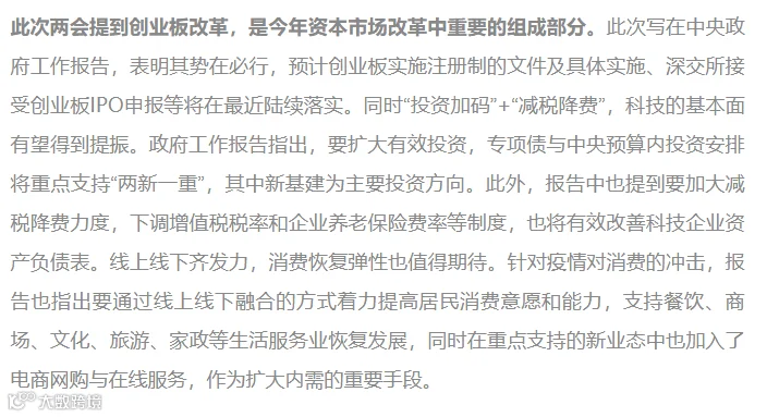 【中正早参】“科技+消费”双驱动,创业板改革成看点 ——2020年政府工作报告解读
