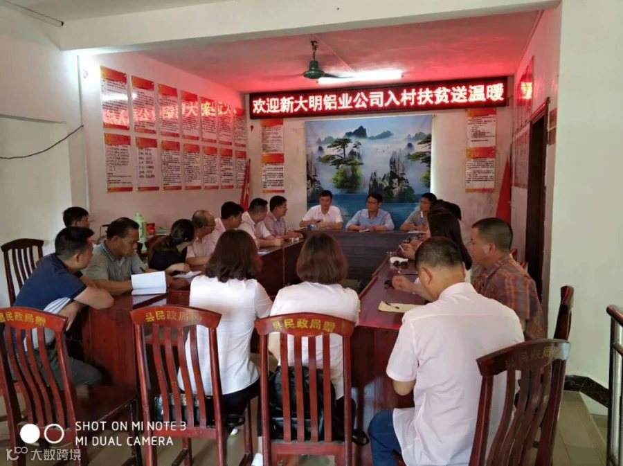 根据鼎湖区委、区政府结对帮扶昭平县2018年扶贫协作工作部署,广东新大明铝业有限公司于2018年3月与昭平县富罗镇牛角村确立结对帮扶关系。为更好地推动帮扶工作开展,我司一行13人于5月19日再次到结对帮扶的牛角村,积极推动帮扶项目“村级服务中心”进一步的落实和走访慰问贫困家庭,并召开了结对帮扶工作交流座谈会。