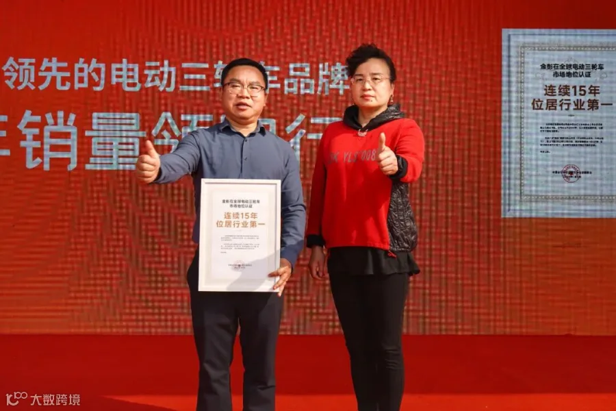 一直以产品为核心的金彭电动三轮车,经过19年的跨越式发展,在全球电动三轮车市场牢牢掌握市场话语权。江苏省自行车电动车协会主任李灵芝代表行业协会向金彭电动三轮车颁发了连续15年销量第一的证明,再次力证金彭电动三轮车行业翘楚的市场地位,“三轮车专家与领跑者”称号实至名归。