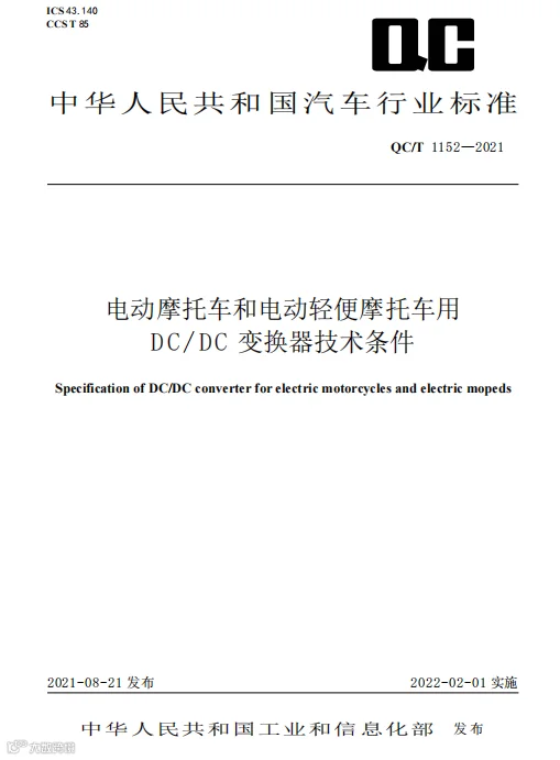 该文件自去年8月发布,今年2月正式实施,旨在提高电动摩托车关键零部件产品技术水平,促进行业发展,保障骑行人员安全,在保持电动摩托车整车及DC/DC变换器先进技术的基础上,为新产品开发、设计、实验及生产提供依据,推动DC/DC变换器及电动摩托车和电动轻便摩托车整体技术水平的不断提高。