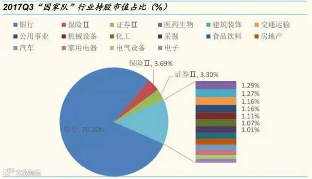 从基金三季报披露的十大重仓股数据来看,“国家队”基金行业配置上以金融(银行、保险)和消费(食品、家电)为主。