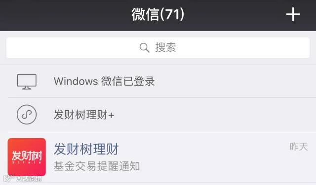 1、在微信“发现”页面点击“小程序”,搜索“发财树理财+”