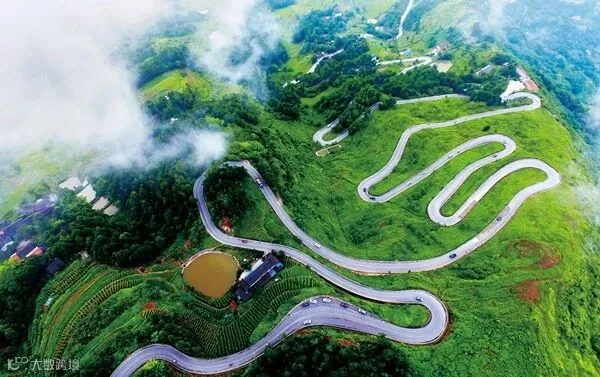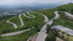 从山脚到山顶,穿插大量U形弯道,蜿蜒盘旋而上!