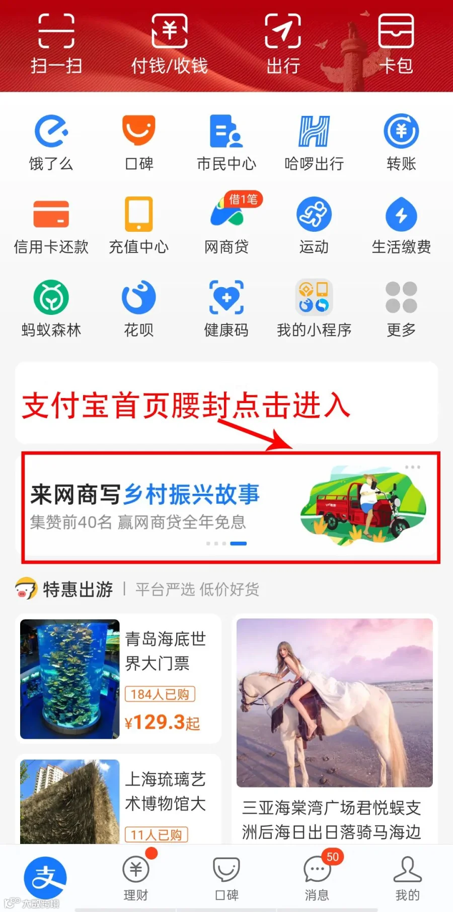 方式三:留意支付宝腰封广告,点击进入