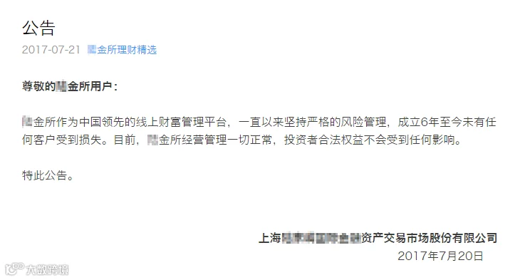 发紧急声明的不止苏宁一家,某金所通过微信公众号和网站发了一个声明。