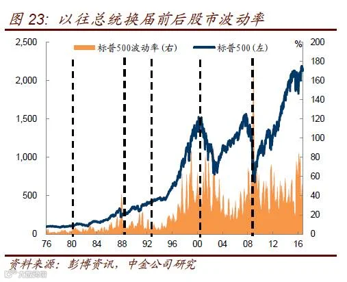 从以往总统换届前后的金融市场表现来看,并无明显的证据显示总统换届会加大资产的波动性。至于奥巴马在08年当选时,金融市场的波动主要是次贷危机带来的,而不是总统换届本身带来的。
