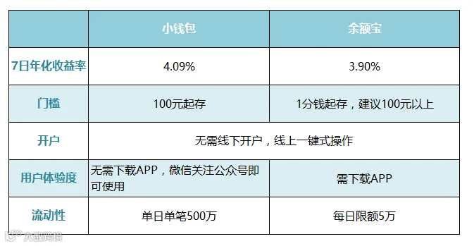 对比一下小钱包和余额宝