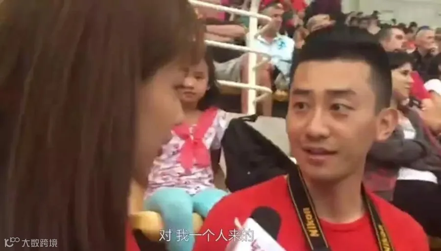 看台上一位神似黄轩的观众成功引起了记者的注意,于是记者上去采访:先问是不是一个人来?