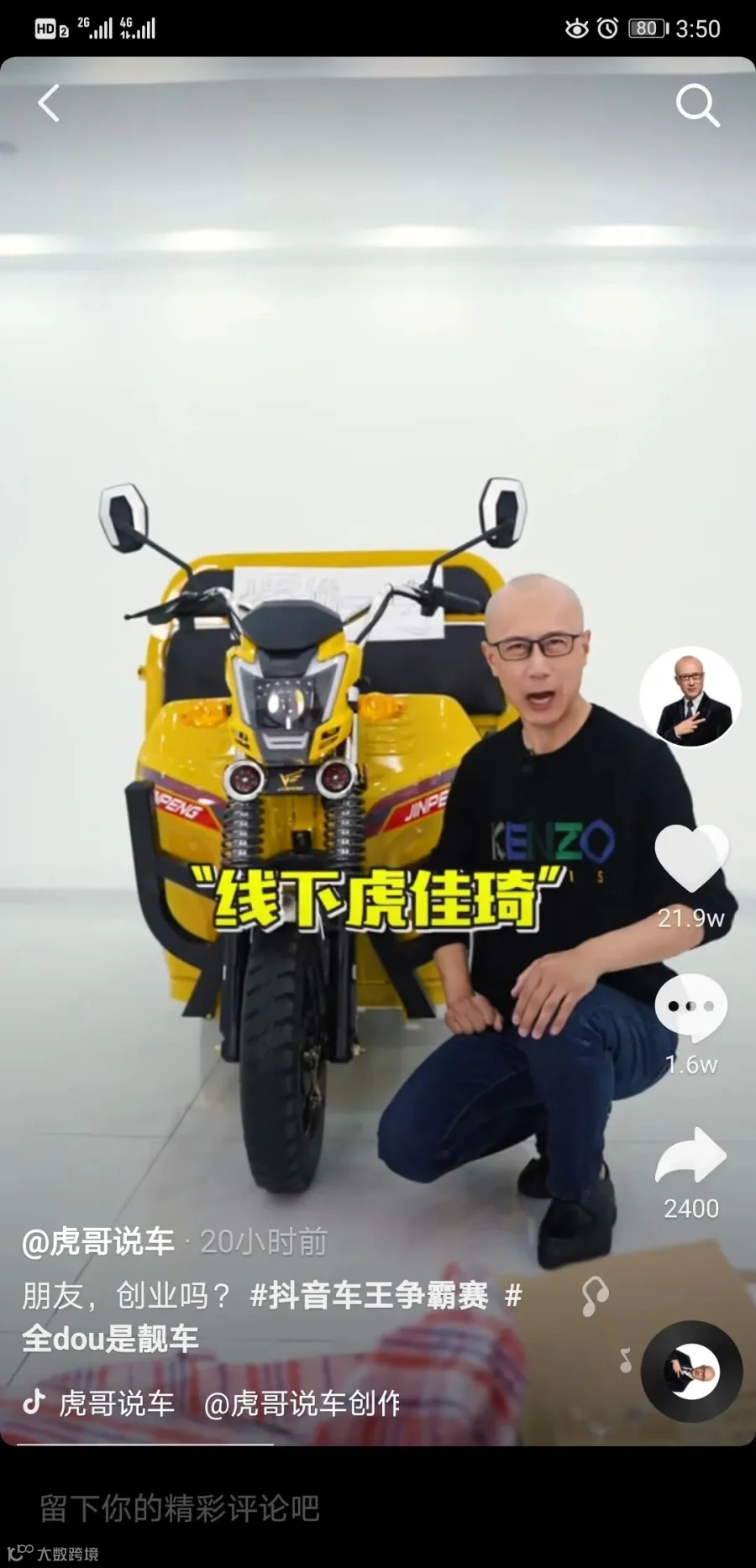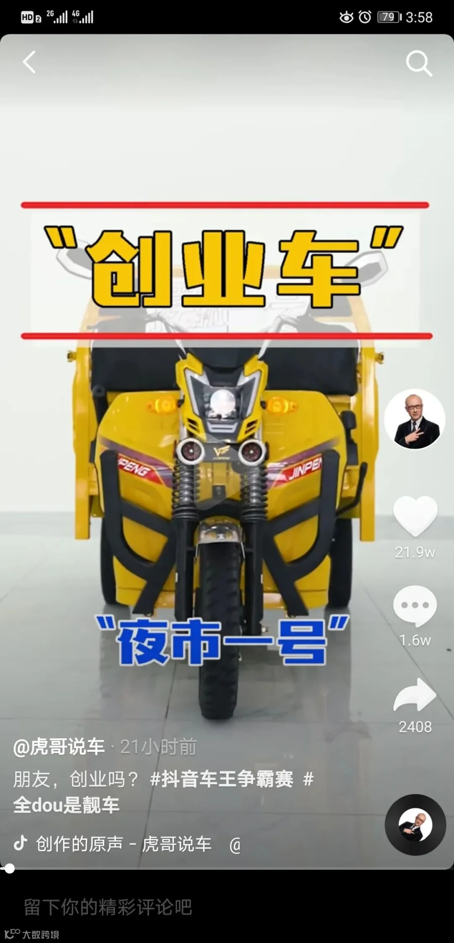 说到“豪车解说”,大家第一个想到的估计都是抖音大咖“虎哥说车”!坐拥2662.2万粉丝,长期雄霸豪车解说榜榜首!昨天,“虎哥说车”为大家重磅推荐了地摊经济的创业车,有着“夜市一号”之称的——金彭大力神!截至目前,视频点赞超21.9万,评论1.6万,金彭大力神果然神!