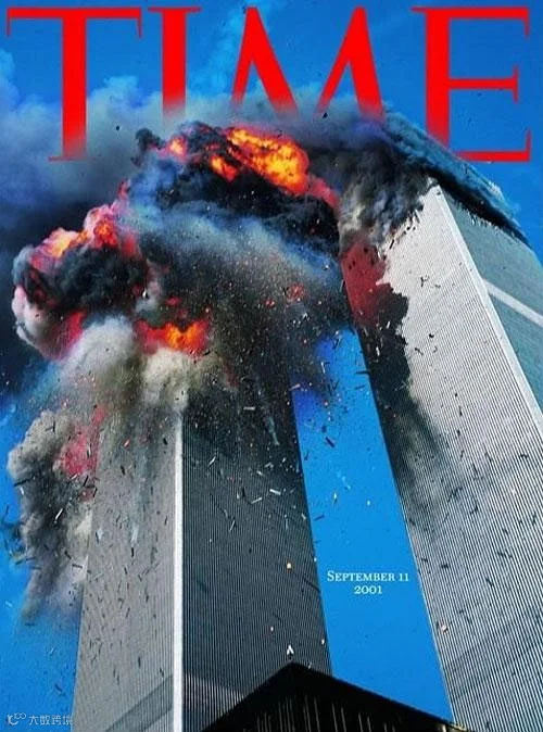 这个“911”特刊封面是摄影师Lyle Owerkoof拍摄的两架被劫持的客机在2001年9月11日直撞世贸中心双子塔的画面定格。当期内容还包含了众多生还者的采访,更多双子塔倒坍后的照片,以及对这场悲剧的死难者的哀悼、致敬。