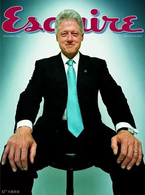 比尔·克林顿,1946年出生,1992年到2000年美国总统。《Esquire》在克林顿离职之际推出的这个封面,取稍稍仰视的角度、略带广角的镜头,标题是“MAN AT HIS BEST”(男人的最佳状态),极富表现力地展示了克林顿的个人魅力。