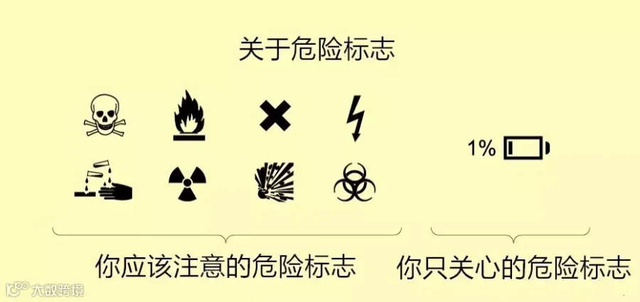 关于”危险标注“,以前你关心的标志和现在我们只关心的一种标志:手机没电了。