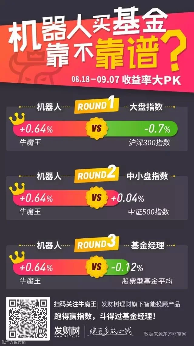 自8月18日上线至今,牛魔王在震荡行情中实现+0.64%收益,跑赢同期大盘收益1.34%!机器人买基金,比你想的还靠谱!