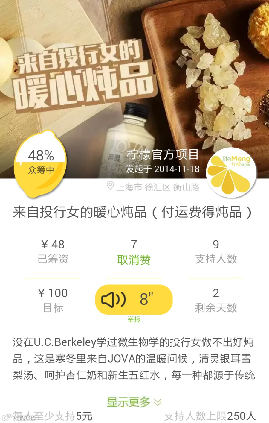 伴着朝阳,我们的柠檬小分队在陆家嘴和张江地铁站,将一颗颗新鲜的梦想派送到每个平凡人身边。 柠檬微众筹 从点滴公益的角度出发,延展在微信平台,每个人都可以发起众筹,分享,实现平凡的小梦想。