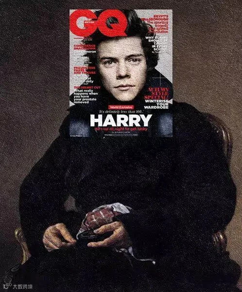 英国超人气组合One Direction成员:哈里·斯泰尔斯Harry Styles的GQ杂志封面混入雅克 - 路易·大卫的Emmanuel Joseph Sieyès