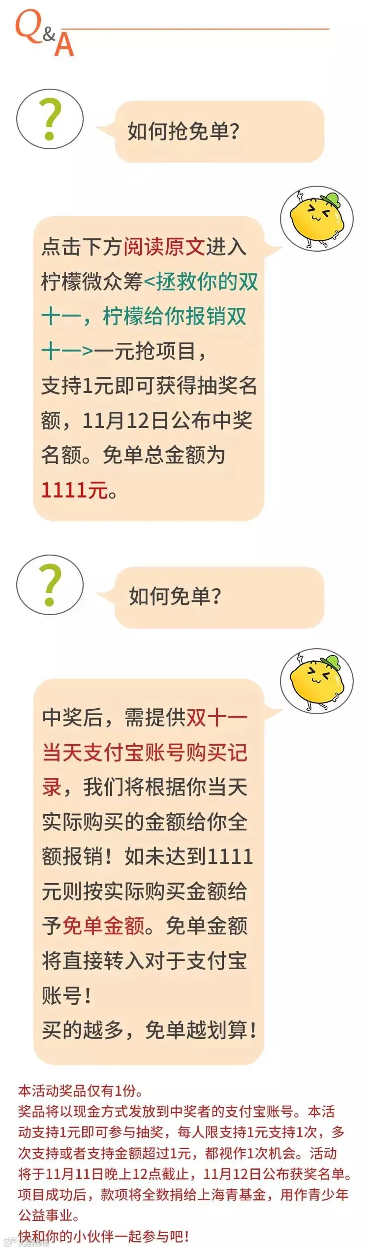 点击“阅读原文”,即可支持柠檬一元抢丨双十一免单,最高免单1111元!这个双十一让你把剁掉的手接回来!
