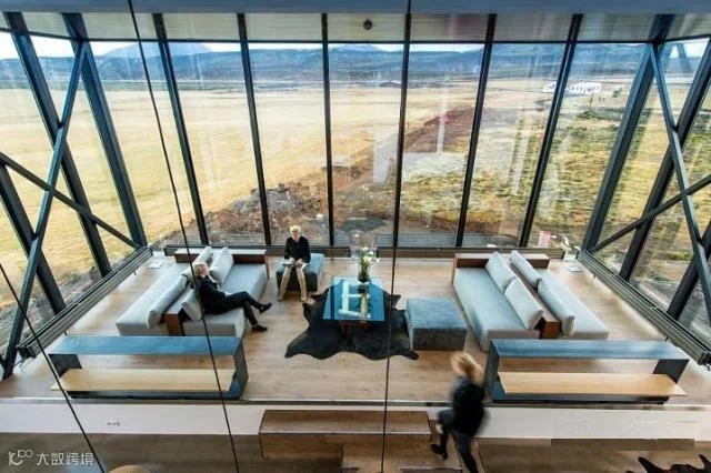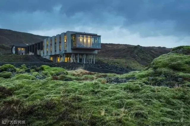 这间酒吧选址偏僻,周围苍茫而荒无人烟,目的就是为了提供观看自然奇景北极光的最佳位置,酒吧巨大的落地窗为观看极光提供了很好的视野,同时还能看到广阔火山岩地上布满到天边尽头的苔藓。这场景,完全是科幻大片啊!