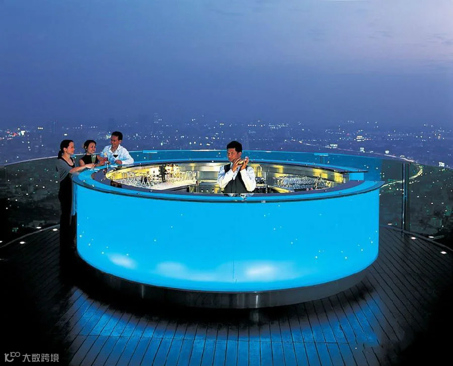 The Sky Bar坐落在曼谷莲花大酒店的屋顶,63层楼的高空下面是曼谷繁华的街道,你可以一边喝着香槟一边欣赏流光溢彩的城市。
