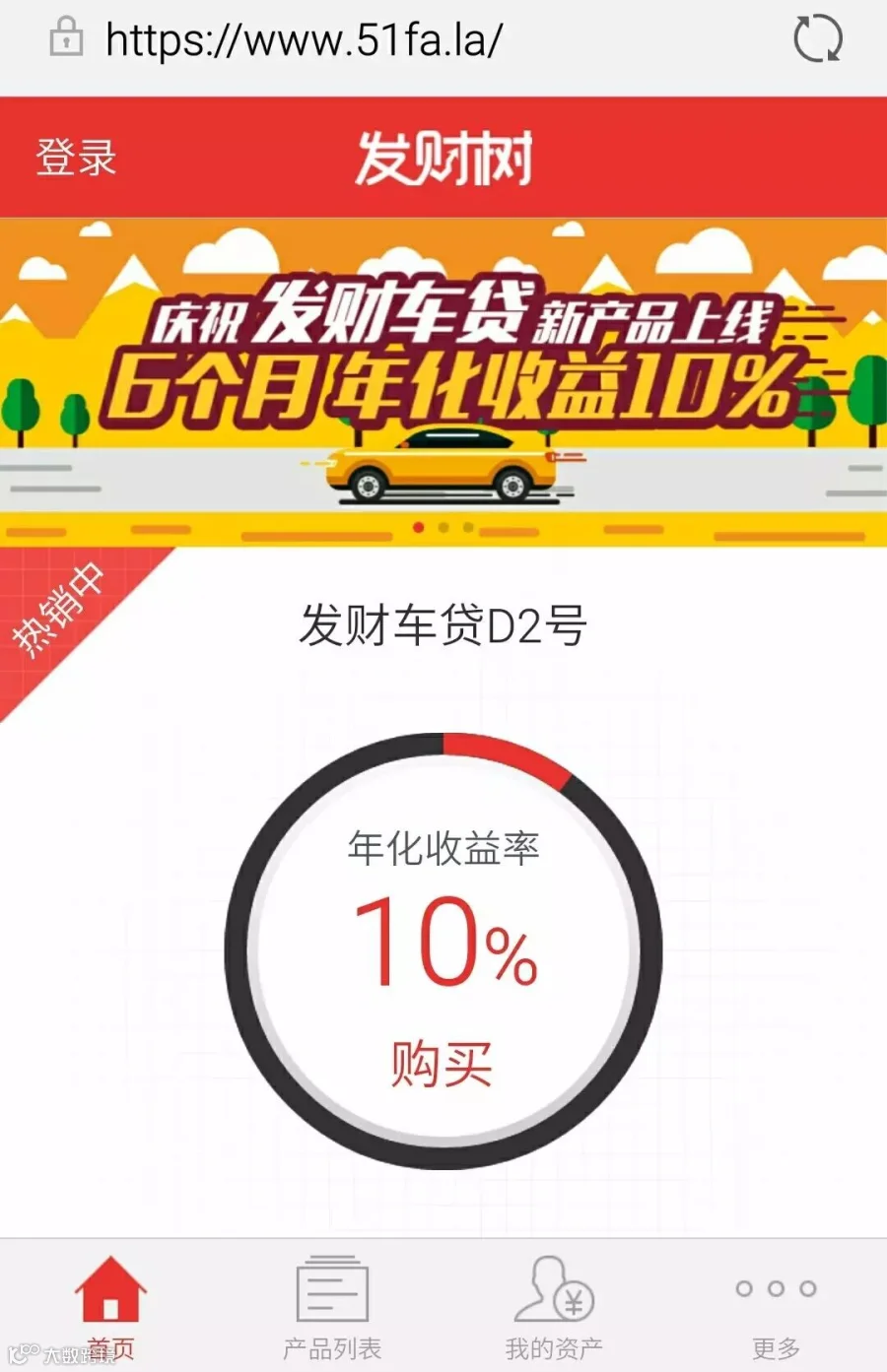 中正财富旗下移动理财平台发财树(51fa.la)近期推出创新理财产品“发财车贷”,年化利率高达10%!