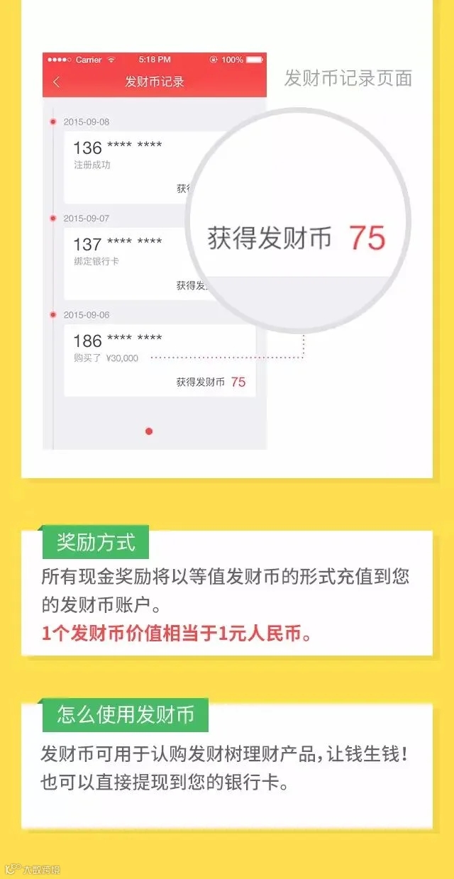3、发财币提现原则上2-3个工作日到达银行卡账户,如因活动太过火爆带来延迟,以实际到账时间为准。