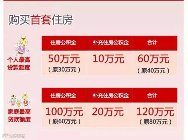 个人最高贷款额度由30万元调整至50万元,家庭最高贷款额度由60万元调整至100万元;缴交补充公积金的,个人最高贷款额度在50万元基础上增加10万元保持不变,家庭最高贷款额度在100万元基础上增加20万元保持不变。