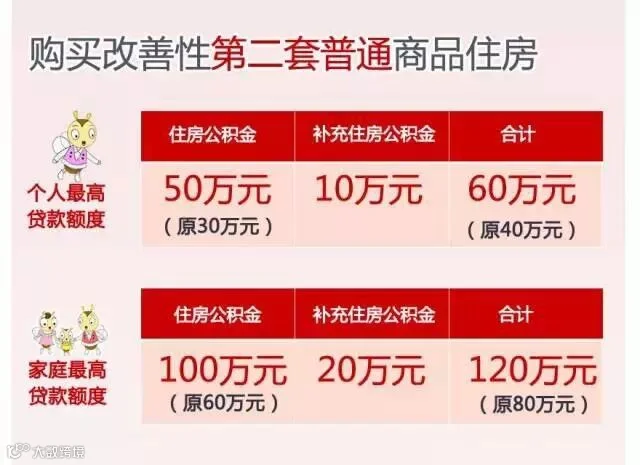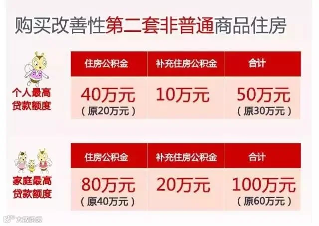 个人最高贷款额度由20万元调整至40万元,家庭最高贷款额度由40万元调整至80万元;缴交补充公积金的,个人最高贷款额度在40万元基础上增加10万元保持不变,家庭最高贷款额度在80万元基础上增加20万元保持不变。