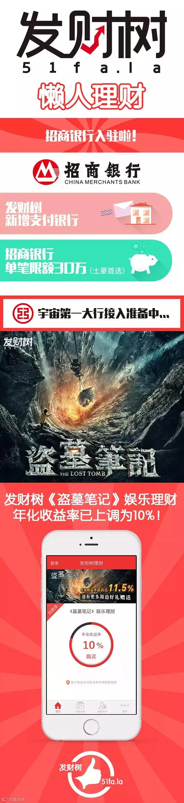 招商银行正式入驻发财树,《盗墓笔记》娱乐理财产品年化收益率再次上浮!