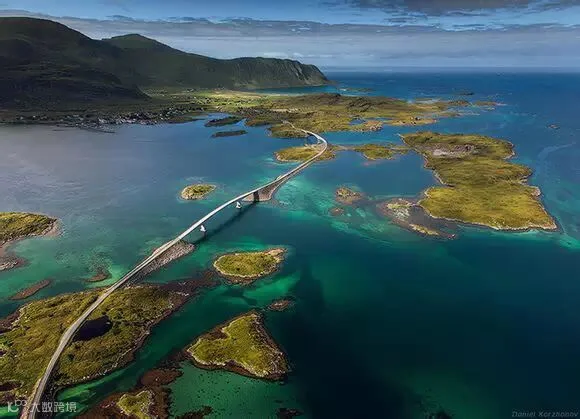 壮观的罗弗敦群岛是由上古的冰川雕琢而成的。Vestfjorden峡湾把它和挪威大陆隔离了开来,把它孤零零留在了辽阔的海上。而佛雷德万桥作为连接这巨大间隙的桥梁,蜿蜒在群岛之上倒也不显突兀,自成一格,堪称风景最美的跨海大桥!