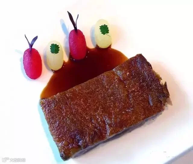 伊比利亚乳猪(The Iberian suckling pig)是另一道足以让人忘忧的菜品,在脆皮里面还有西瓜和甜菜。