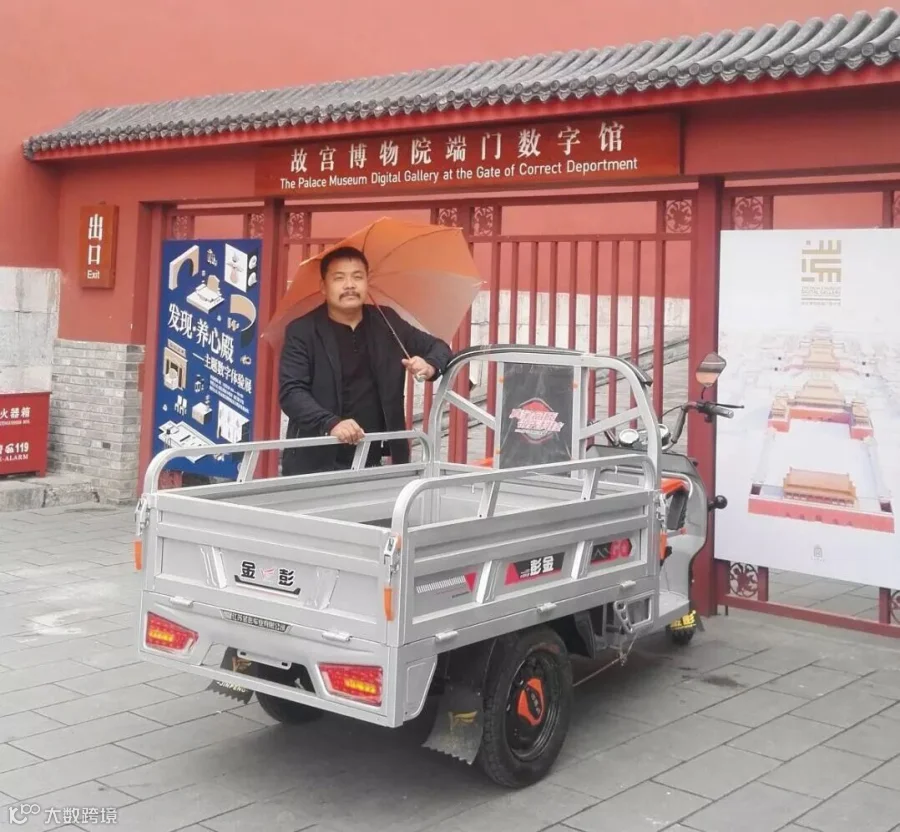网友和故宫博物院的金彭车合影留念