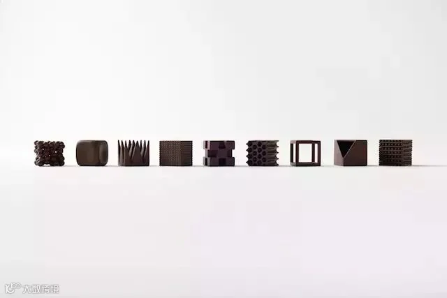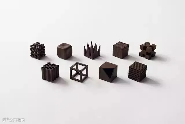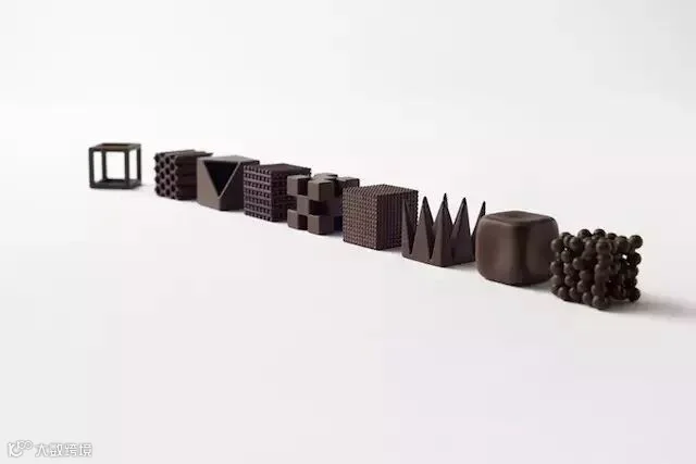 Nendo设计师设计了一个名为Chocolatexture的巧克力系列,9块26立方毫米的巧克力包装精致,圆润、尖锐、镂空各有千秋,虽然原材料是一样的,口味也并没有不同,但变化的造型相信还是能给食客带来不一样的感受。