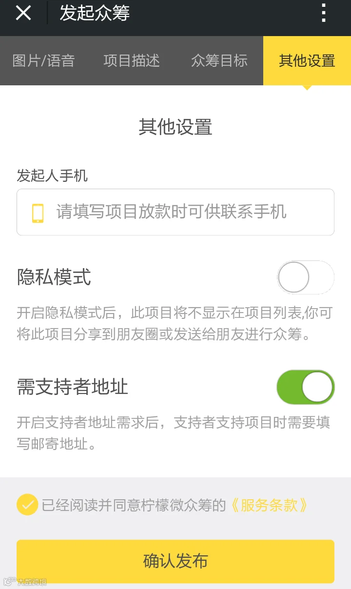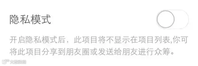 Tip4:什么是“隐私模式”?按键开启后,广大檬友将无法在柠檬首页看到您的项目,但依旧可以转发朋友圈,分享给朋友们进行众筹。↓↓↓