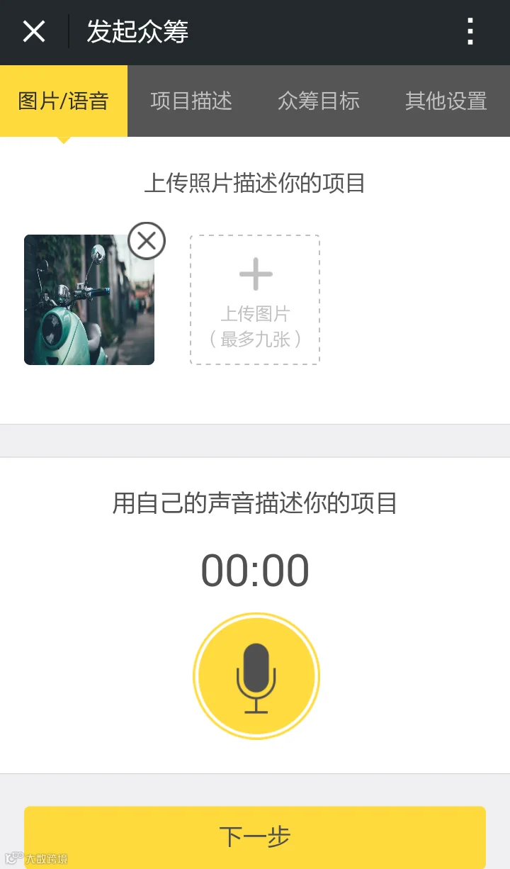 Tip2:众筹标题不得超过20个字,项目详情不得超过500个字。