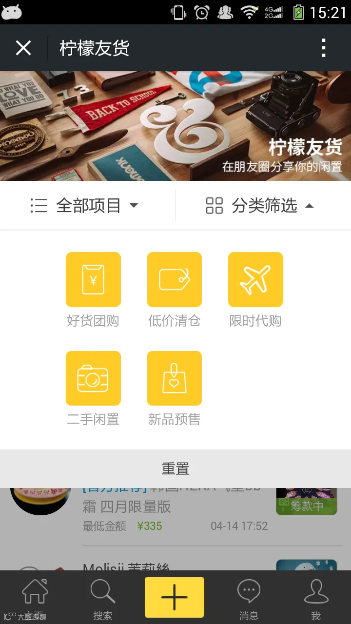 点击开“友货”分类,你会发现:好友团购、低价清仓、限时代购、二手闲置、新品预售几个小版块,尽管选择感兴趣的乱入~~