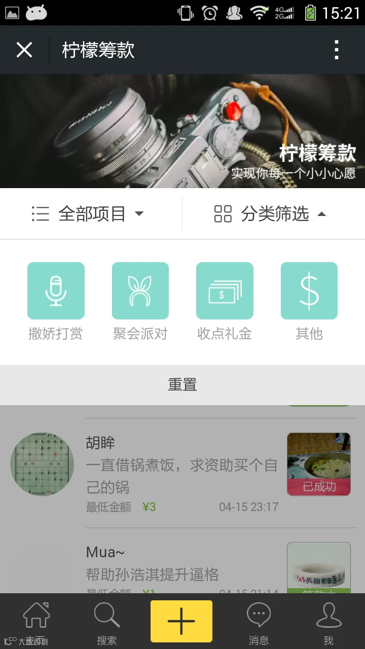 做好以上步骤,就能立即发起你需要的小项目!比如,处置家中闲置的物件,做做小生意等,然后将项目页分享到你的朋友圈即可。