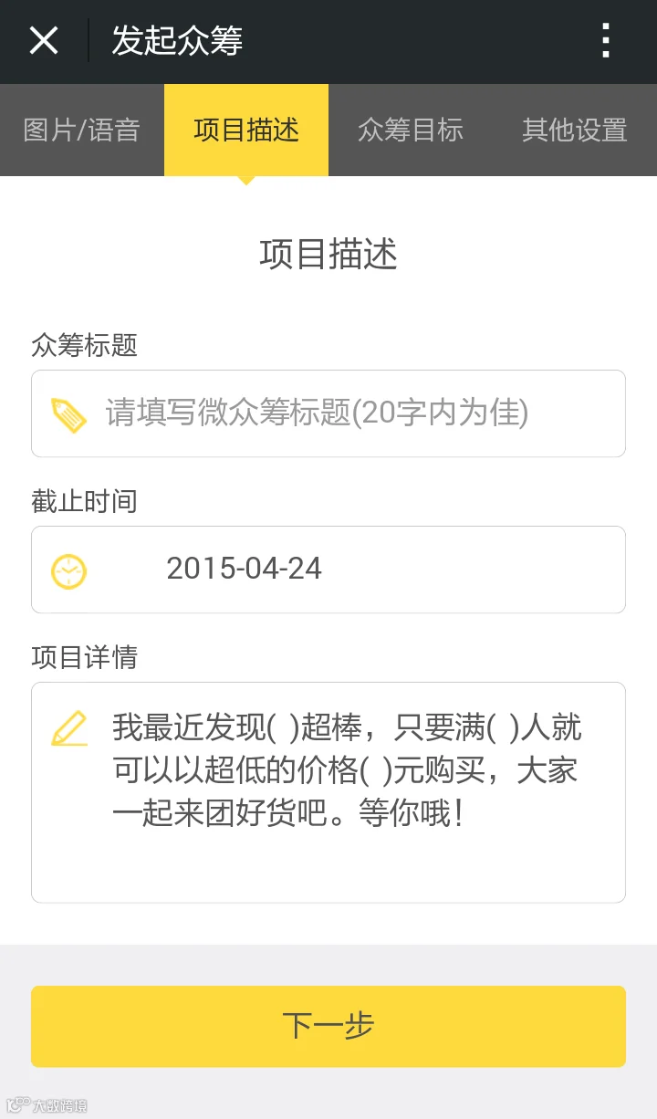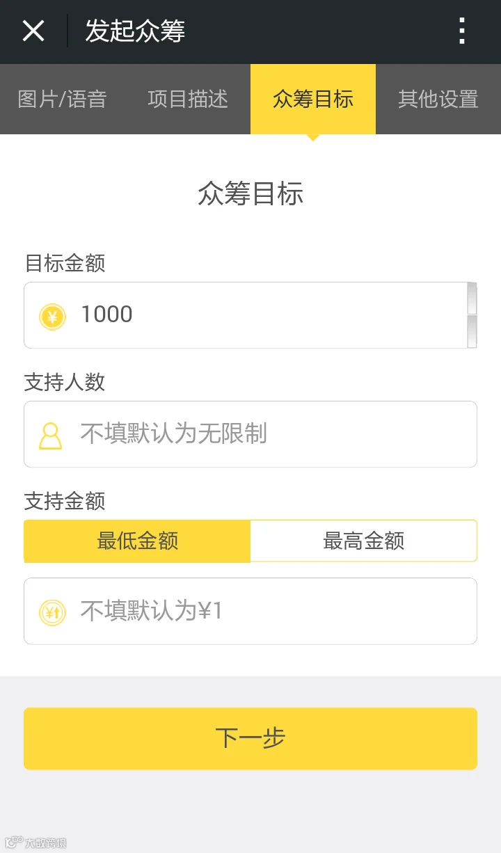最后写下你想获得的目标金额,每人支持金额等要求