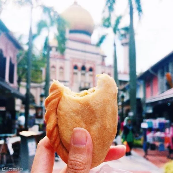 在新加坡甘榜格南的巴梭拉街附近的苏丹清真寺。吃咖喱卜 (curry puff )
