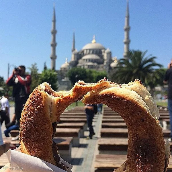 simit是土耳其的街头小吃,这种传统的芝麻圈面包是撒上芝麻的硬面包。其实它的口感是外硬内软。