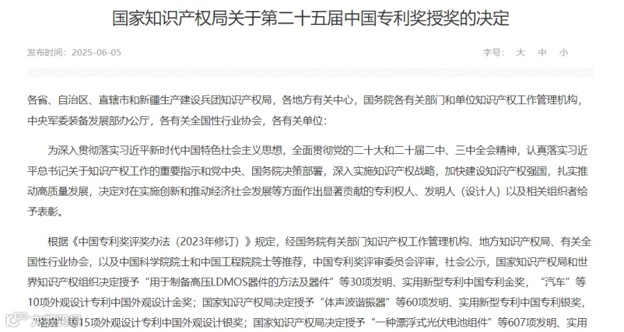 近日,国家知识产权局公布第二十五届中国专利奖名单,广东省三浦科技股份有限公司斩获中国专利优秀奖,获奖专利占所在城市获奖总数的三分之一,彰显其在智能停车领域的创新实力。
