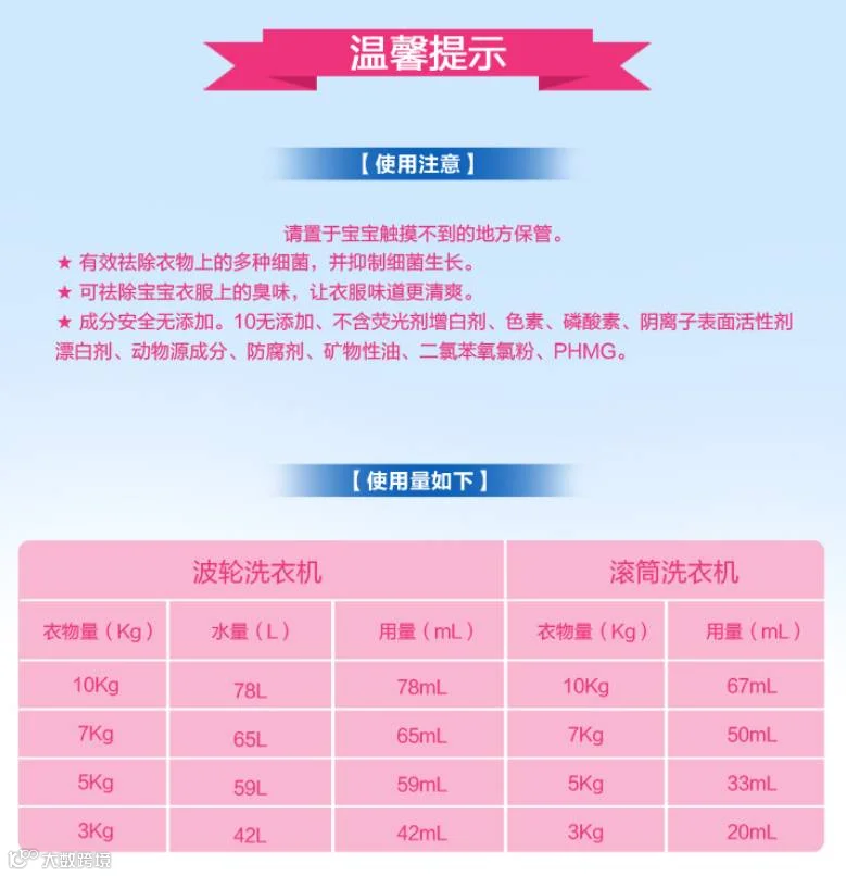 2.去污力强:宝宝的衣服上经常会有各种污渍:奶渍、口水渍、水果渍等。因此,要温和的基础上要保证去污力。