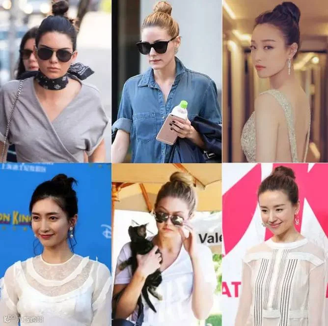 Kendall Jenner简直可以称为“冲天丸子头最佳代言人”, 最爱的发型就是随手将头发抓起进行缠绕固定而成的松散冲天丸子。