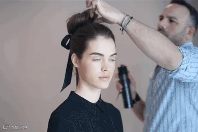 Step1:先用定型喷雾给头发定型,打造出蓬松却有结构的纹理,一边喷定性喷雾一边用手将头发从发根处拨松散,这是关系到你的丸子头能不能自然蓬松最关键的一步。